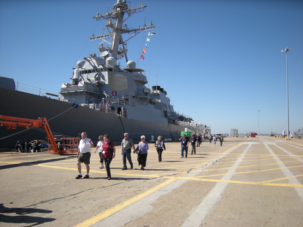 On Saturday our bus took us to the Norfolk Naval Base which is part of the Naval Station Norfolk - the largest naval installation in the world and home port to 78 ships, 26 aircraft squadrons comprised of 133 aircraft. It occupies 8,000 acres of land, and is home to more than 100,000 military personnel. The highlight was the tour of the USS Cole DDG 67 which was bombed while refueling in the Yemen port of Aden in 2000 by a suicide attack. Seventeen sailors were killed; there are 17 stars in a passageway outside the mess hall where they were hit, a very moving tribute.
