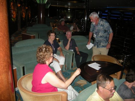 Everyone arrived in Ft. Lauderdale, FL on April 16th; most stayed at the Marriott Courtyard, our host hotel which offered a courtesy shuttle to the cruise terminal on Thursday, April 17th. Envelopes were passed out to each couple that included their badges, a brief history and maps of each port-of-call.