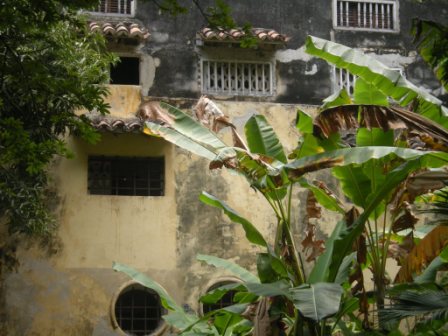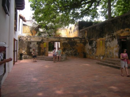 Tuesday we were in Cartagena, Colombia from 7 am to 2 pm. Seeing the old walled city which dates back to the 17th century was amazing with its colorful restored Spanish colonial buildings. Our first stop was the Castillo de San Felipe, a fortress sitting on top of a hill guarding the harbor. From there we stopped at Las Bovedas which was originally jail cells but today each cell is a shop selling coffee, hats, and other handicrafts. Next was a walking tour (about an hour) stopping at the Palacio de la Inquisicion and San Pedro Claver Sanctuary. The day was overcast which helped keep the humidity low.